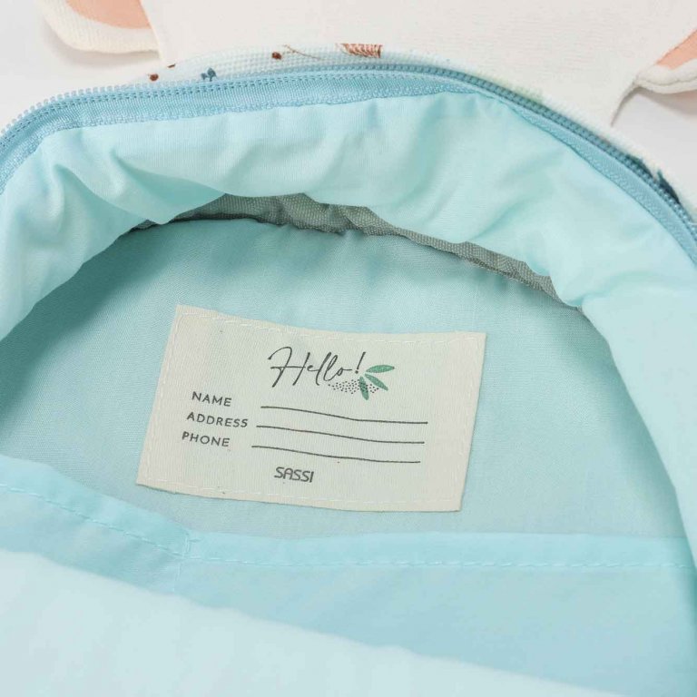 Realizzato in tessuto di cotone resistente, è dotato di una maniglia superiore per essere sollevato o appeso con facilità , e di un’etichetta interna per scrivere il nome del bambino. Il design a forma di orso Munchy lo rende un accessorio dolce e irresistibile.